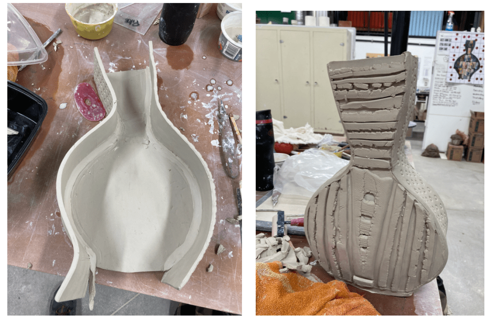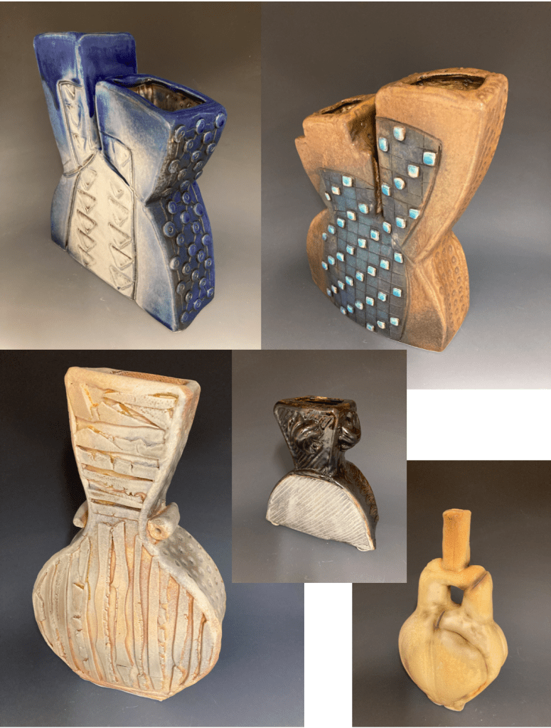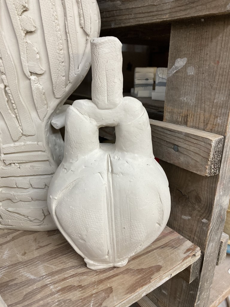 We had access to lots of molds as Medalta is known for using molds for making their pottery.. I was looking at my cards and thought….I could make this double necked vase!