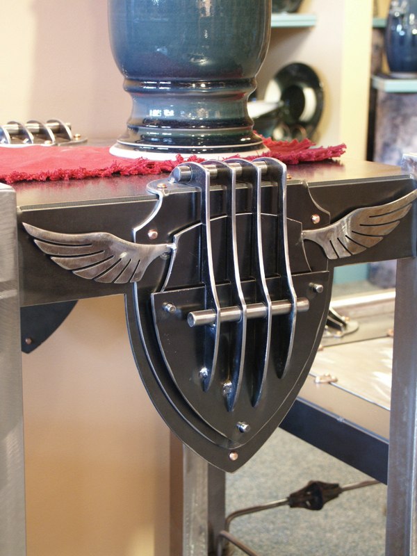 These tables are some of my newest work. I’ve been an Art Deco fan for as long as I can remember and some how this keeps coming out in my designs. Some of the details like the wings come from conventions based in the 1930’s as in hood ornaments and logo’s.